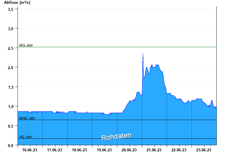 - Mittlerer Niedrigwasserabfluss MNQ 0,65 m³/s