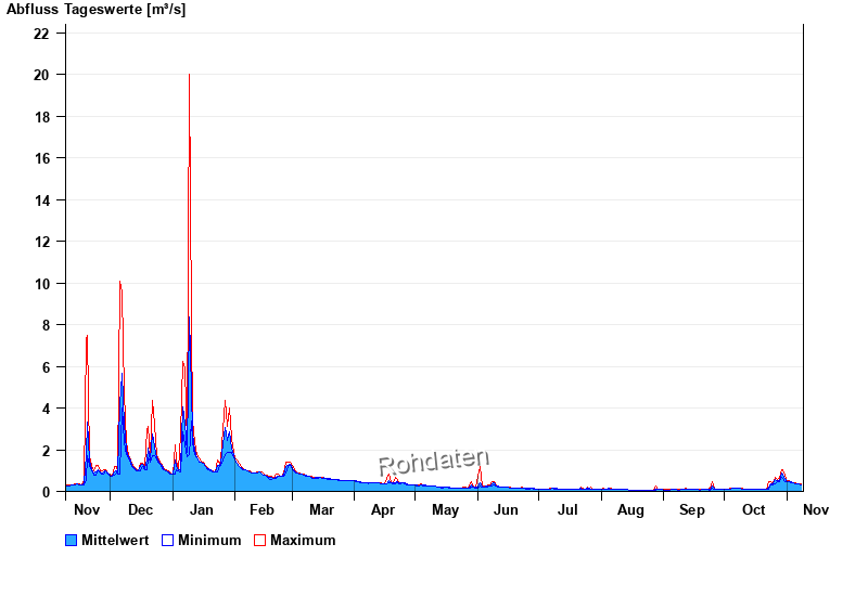 | Date | Mean value [m³/s] | Maximum [m³/s] | Minimum [m³/s] |