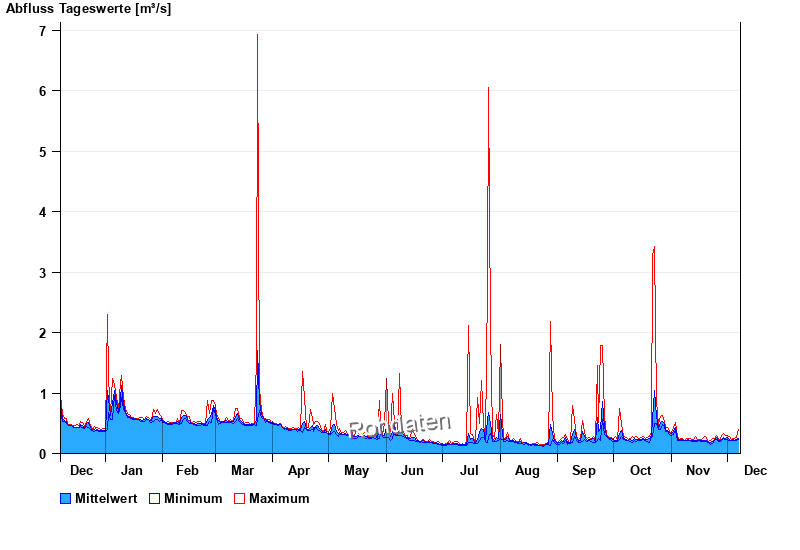 | Date | Mean value [m³/s] | Maximum [m³/s] | Minimum [m³/s] |