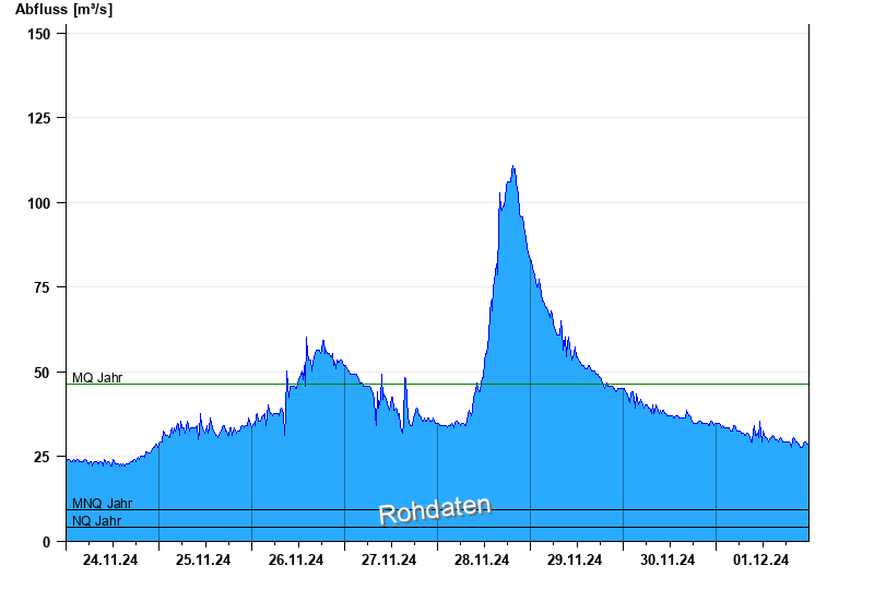 - Mittlerer Niedrigwasserabfluss MNQ 9,43 m³/s