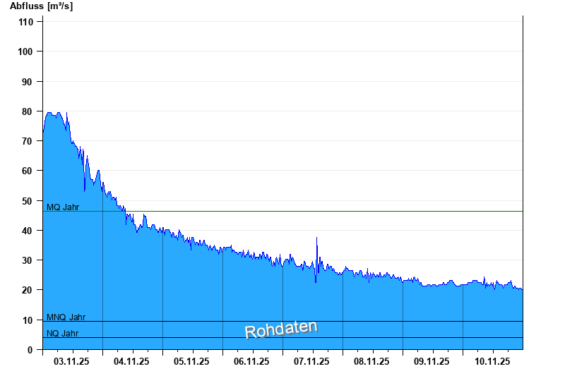 - Mittlerer Niedrigwasserabfluss MNQ 9,43 m³/s