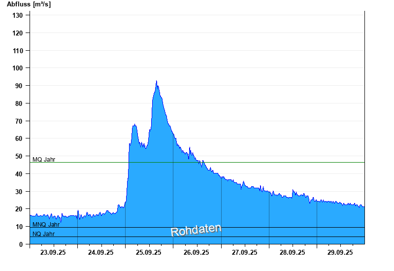 - Mittlerer Niedrigwasserabfluss MNQ 9,43 m³/s