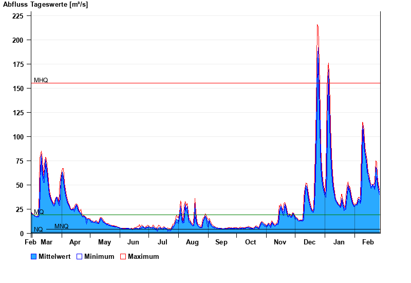 - Mittlerer Hochwasserabfluss MHQ 155 m³/s