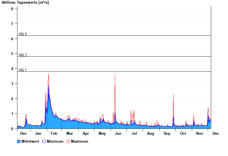 | Date | Mean value [m³/s] | Maximum [m³/s] | Minimum [m³/s] |