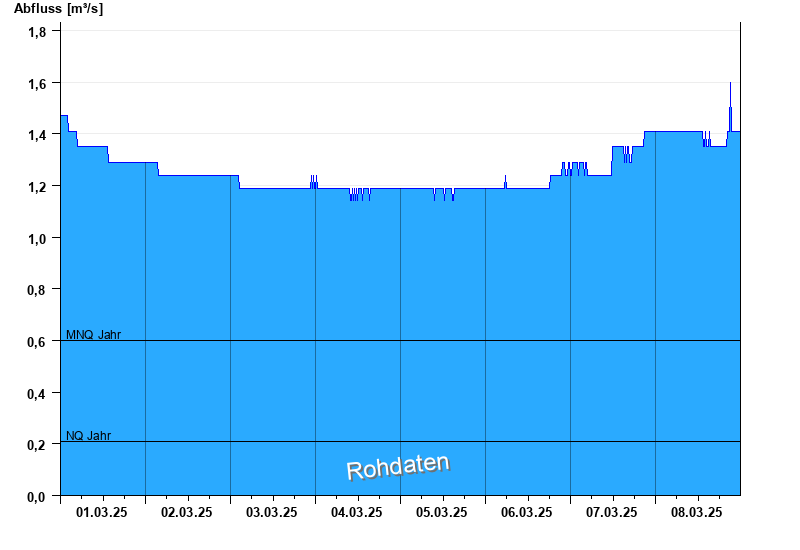 - Mittlerer Niedrigwasserabfluss MNQ 0,6 m³/s