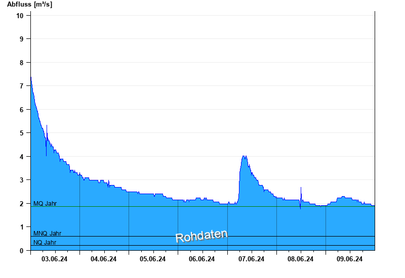 - Mittlerer Niedrigwasserabfluss MNQ 0,6 m³/s
