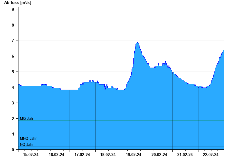- Mittlerer Niedrigwasserabfluss MNQ 0,6 m³/s