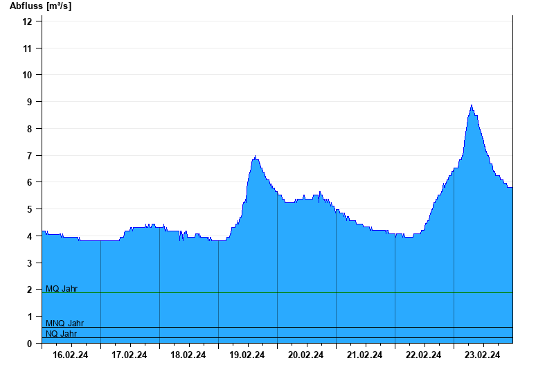 - Mittlerer Niedrigwasserabfluss MNQ 0,6 m³/s