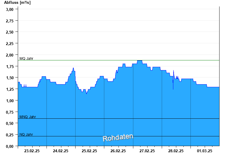 - Mittlerer Niedrigwasserabfluss MNQ 0,6 m³/s