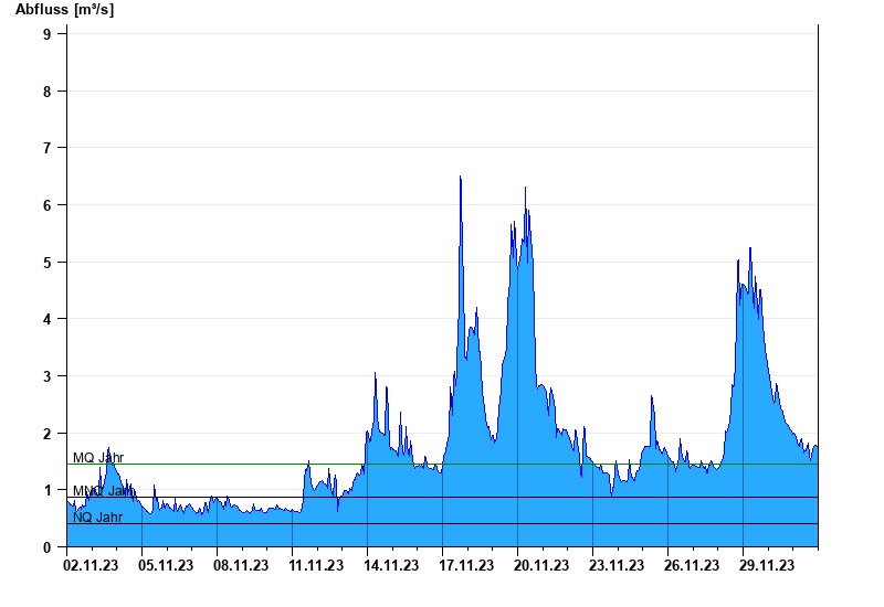 - Mittlerer Niedrigwasserabfluss MNQ 0,867 m³/s