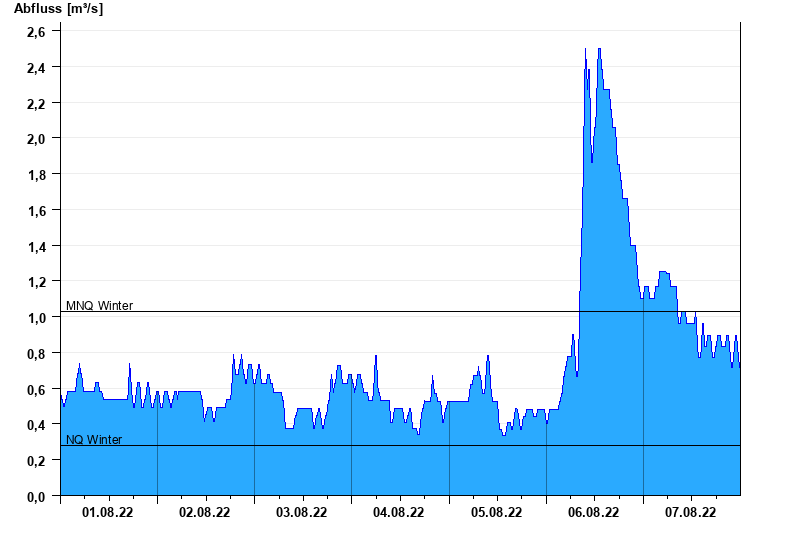 - Mittlerer Niedrigwasserabfluss MNQ 1,03 m³/s
