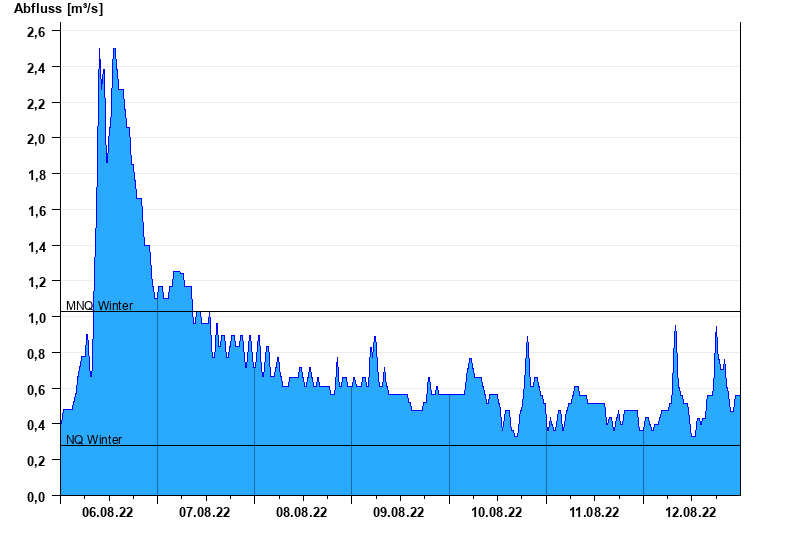- Mittlerer Niedrigwasserabfluss MNQ 1,03 m³/s
