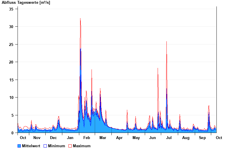 | Date | Mean value [m³/s] | Maximum [m³/s] | Minimum [m³/s] |