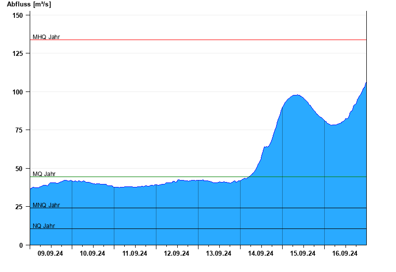 - Mittlerer Hochwasserabfluss MHQ 134 m³/s