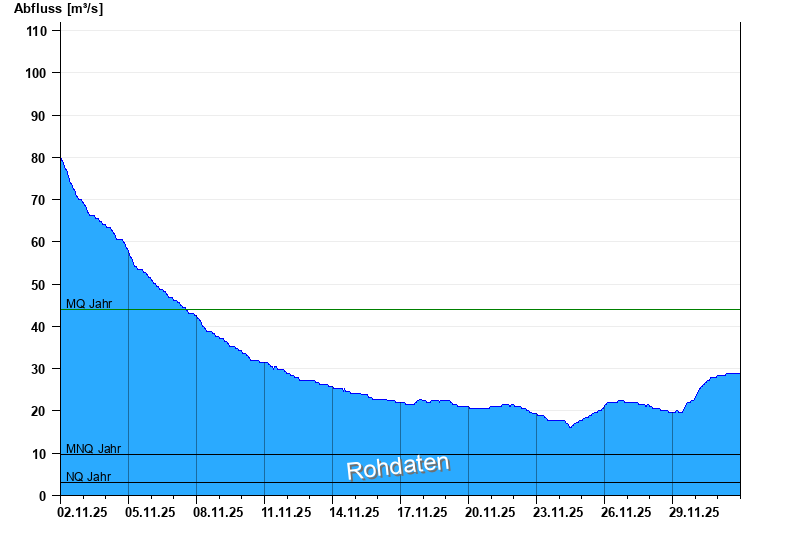 - Mittlerer Niedrigwasserabfluss MNQ 9,72 m³/s