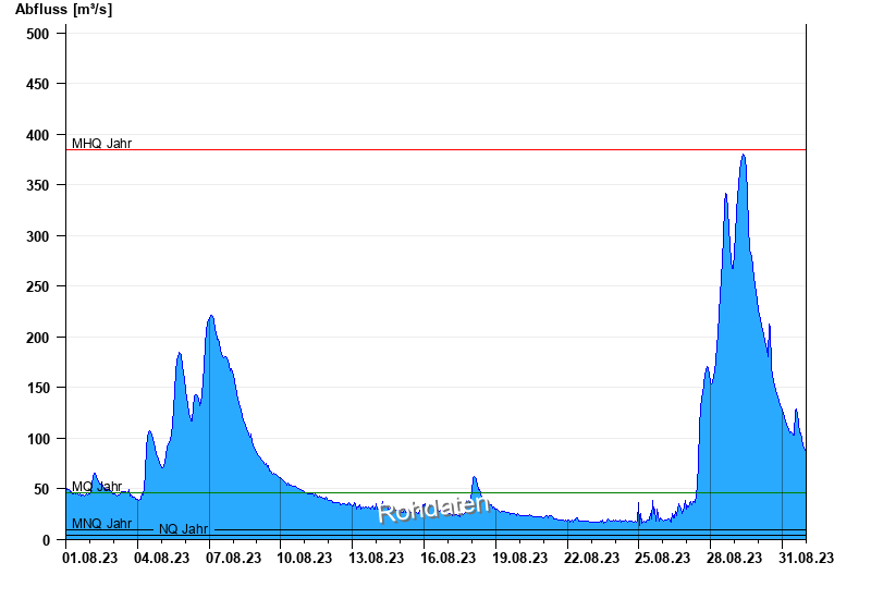 - Mittlerer Hochwasserabfluss MHQ 385 m³/s