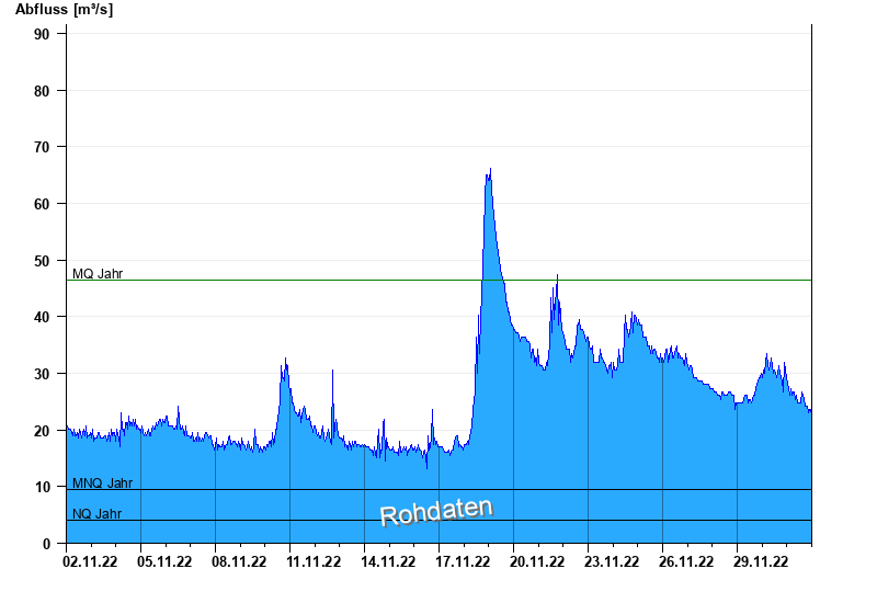 - Mittlerer Niedrigwasserabfluss MNQ 9,43 m³/s