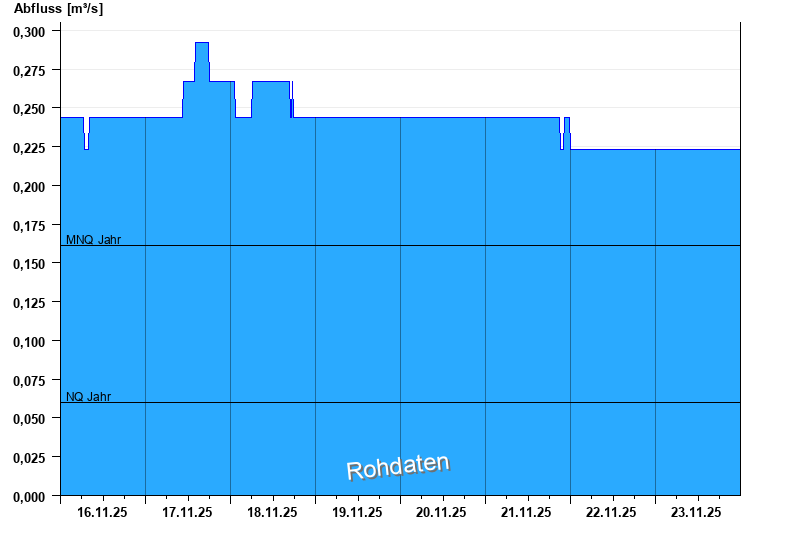 - Mittlerer Niedrigwasserabfluss MNQ 0,161 m³/s