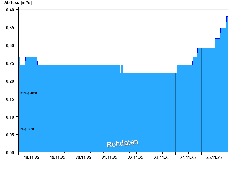 - Mittlerer Niedrigwasserabfluss MNQ 0,161 m³/s