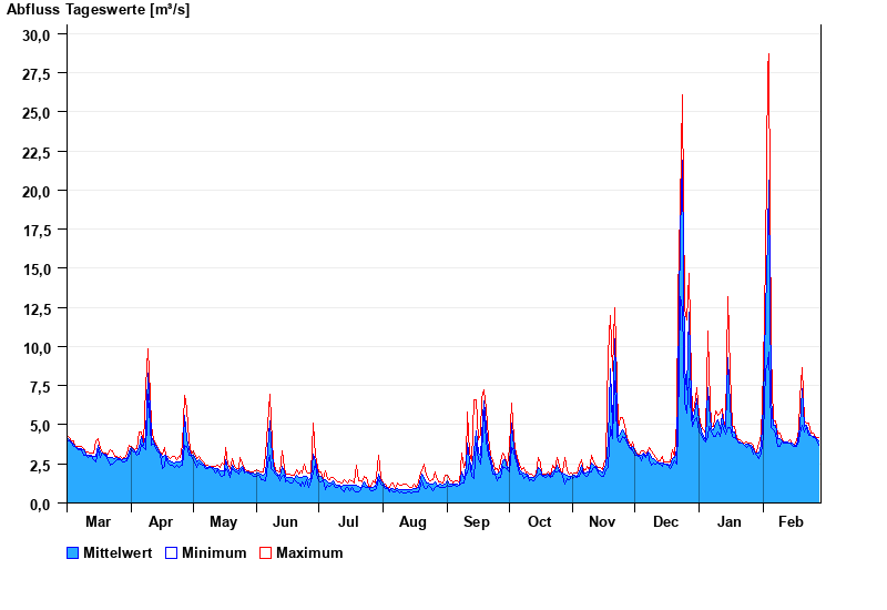 | Date | Mean value [m³/s] | Maximum [m³/s] | Minimum [m³/s] |