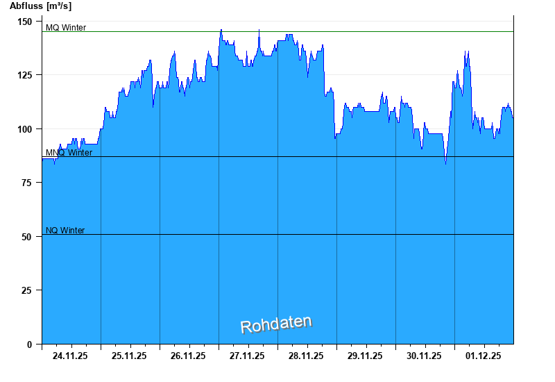 - Mittlerer Niedrigwasserabfluss MNQ 87,2 m³/s