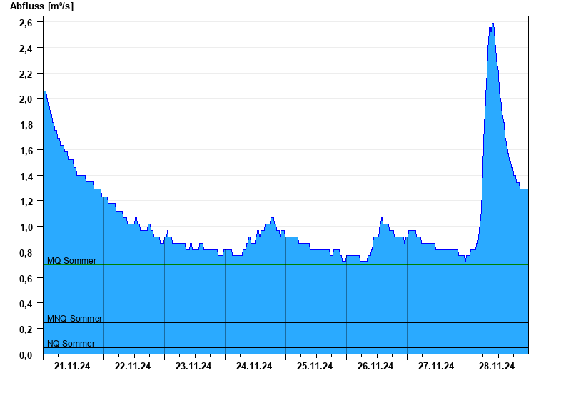 - Mittlerer Niedrigwasserabfluss MNQ 0,246 m³/s