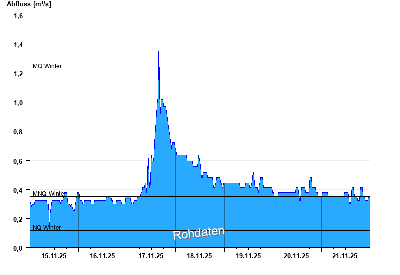 - Mittlerer Niedrigwasserabfluss MNQ 0,352 m³/s