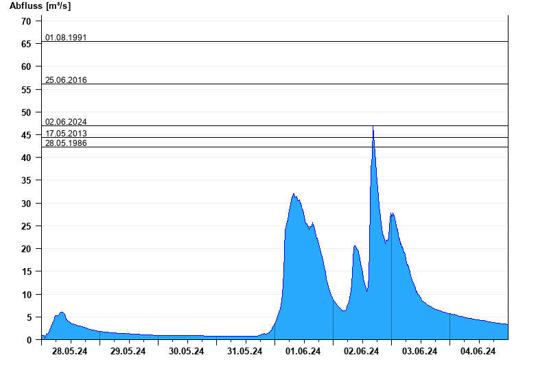 - 02.06.2024 Abfluss: 46,9 m³/s