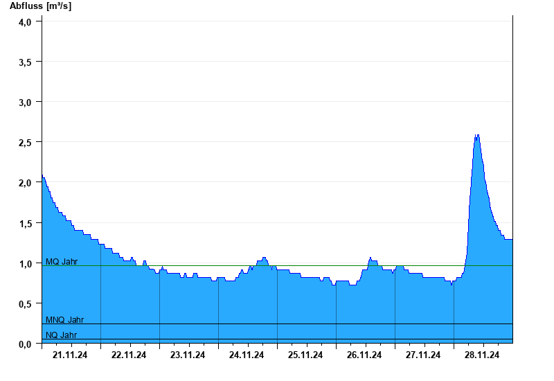 - Mittlerer Niedrigwasserabfluss MNQ 0,239 m³/s
