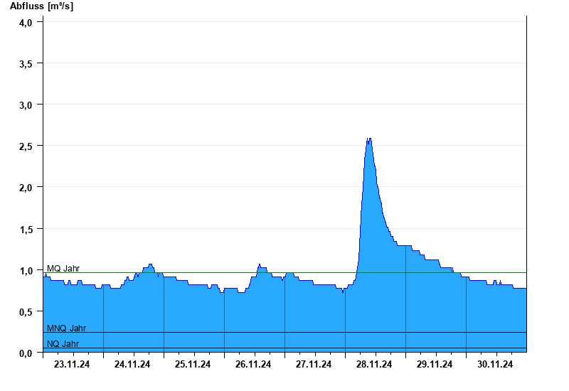 - Mittlerer Niedrigwasserabfluss MNQ 0,239 m³/s