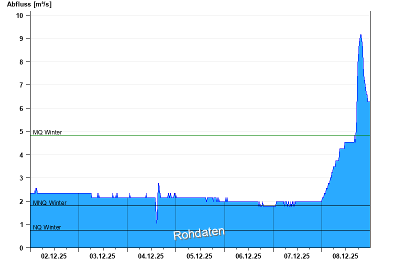 - Mittlerer Niedrigwasserabfluss MNQ 1,8 m³/s