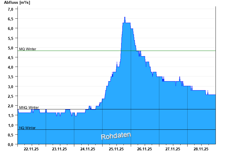 - Mittlerer Niedrigwasserabfluss MNQ 1,8 m³/s
