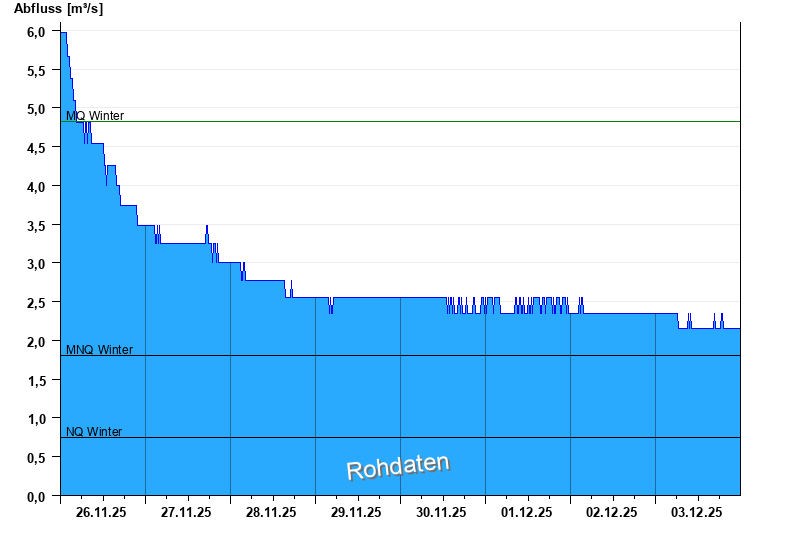 - Mittlerer Niedrigwasserabfluss MNQ 1,8 m³/s
