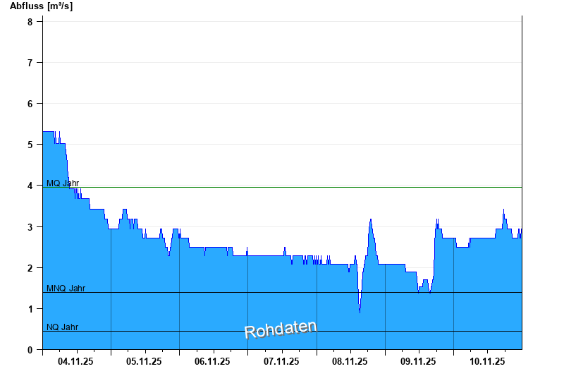 - Mittlerer Niedrigwasserabfluss MNQ 1,4 m³/s