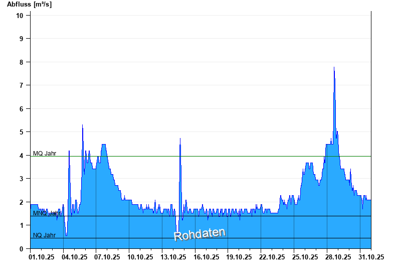 - Mittlerer Niedrigwasserabfluss MNQ 1,4 m³/s