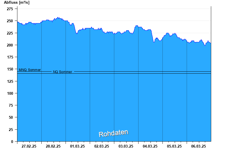 - Mittlerer Niedrigwasserabfluss MNQ 145 m³/s