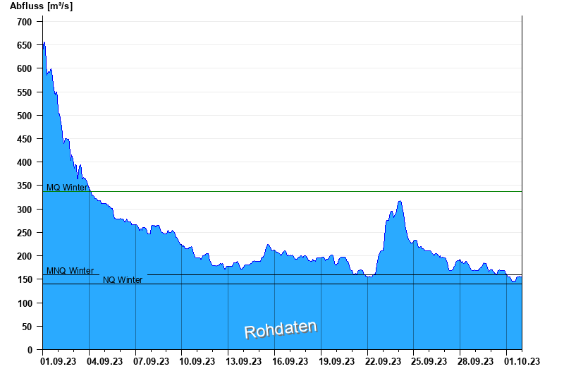 - Mittlerer Niedrigwasserabfluss MNQ 160 m³/s