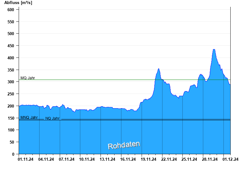 - Mittlerer Niedrigwasserabfluss MNQ 144 m³/s