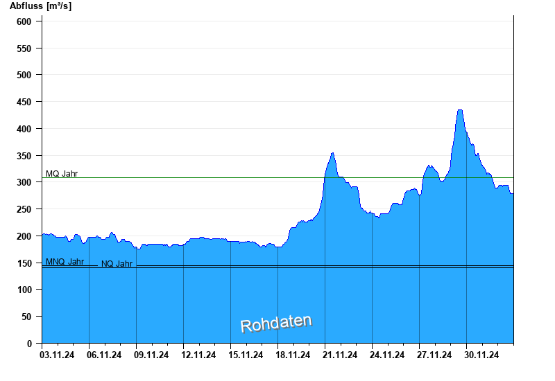 - Mittlerer Niedrigwasserabfluss MNQ 144 m³/s