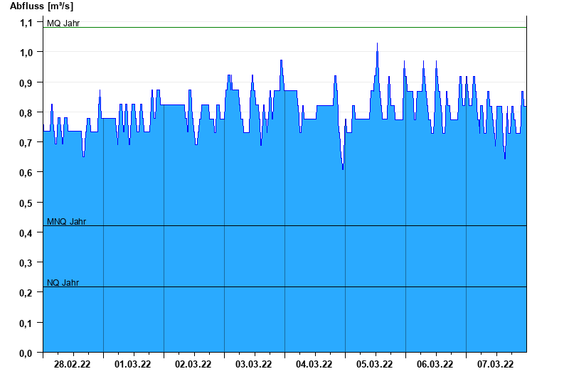 - Mittlerer Niedrigwasserabfluss MNQ 0,421 m³/s