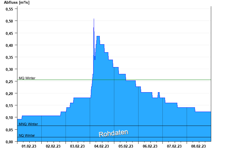 - Mittlerer Niedrigwasserabfluss MNQ 0,065 m³/s