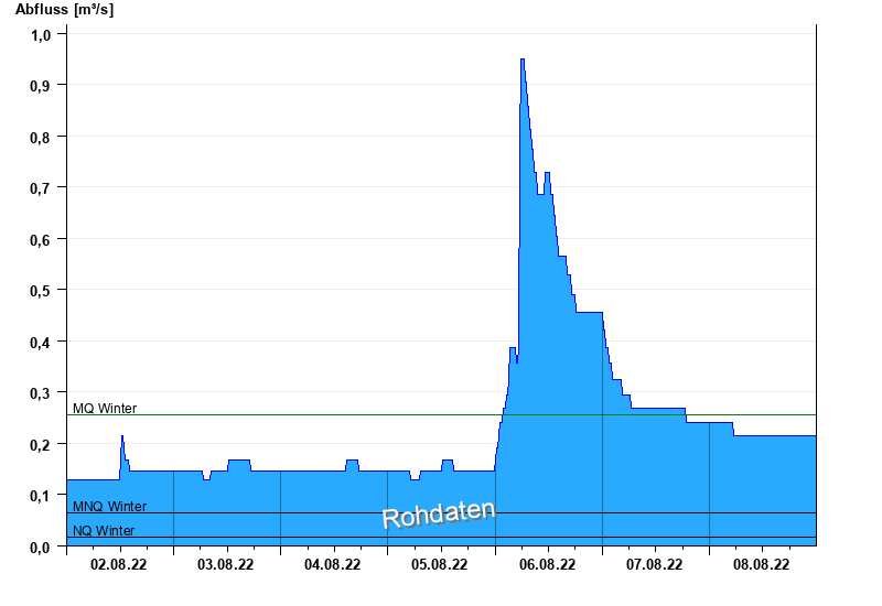 - Mittlerer Niedrigwasserabfluss MNQ 0,065 m³/s