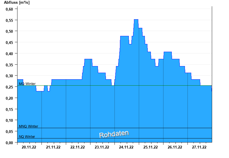 - Mittlerer Niedrigwasserabfluss MNQ 0,065 m³/s