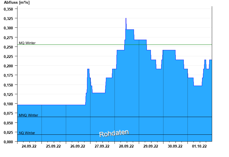 - Mittlerer Niedrigwasserabfluss MNQ 0,065 m³/s
