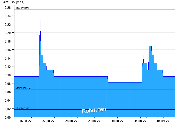 - Mittlerer Niedrigwasserabfluss MNQ 0,065 m³/s