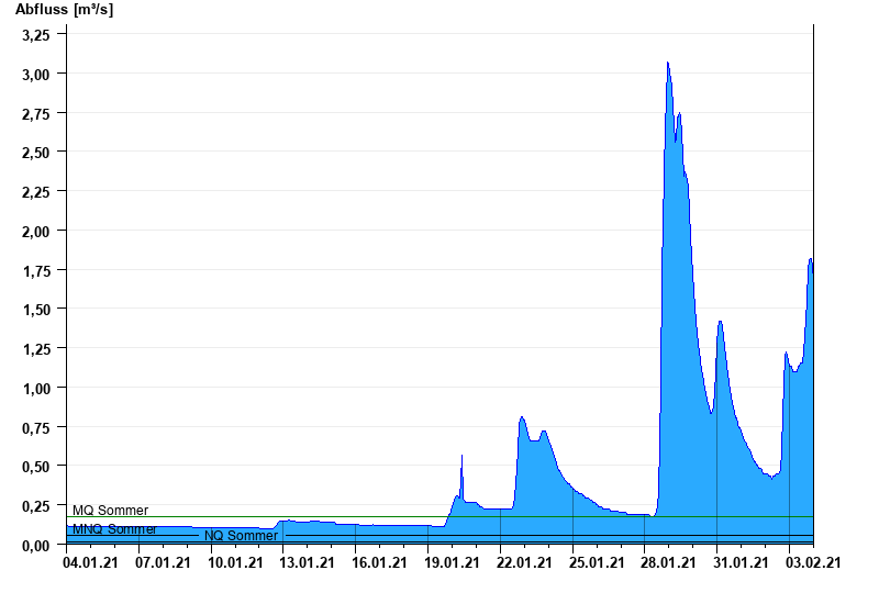 - Mittlerer Niedrigwasserabfluss MNQ 0,054 m³/s