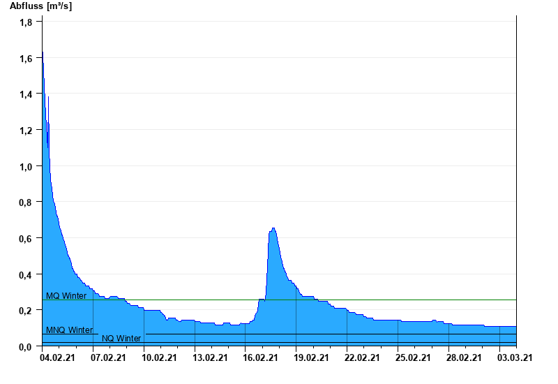 - Mittlerer Niedrigwasserabfluss MNQ 0,065 m³/s