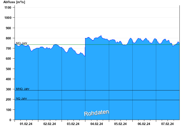 - Mittlerer Niedrigwasserabfluss MNQ 288 m³/s