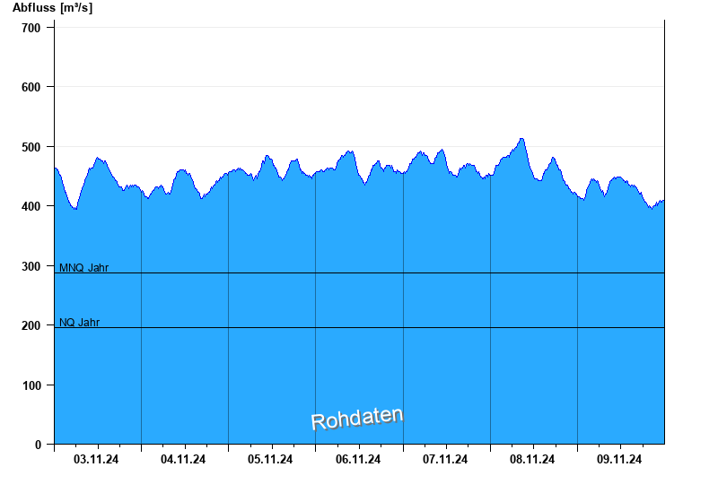 - Mittlerer Niedrigwasserabfluss MNQ 288 m³/s