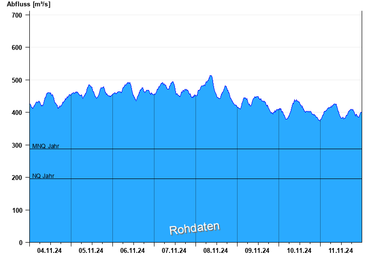 - Mittlerer Niedrigwasserabfluss MNQ 288 m³/s